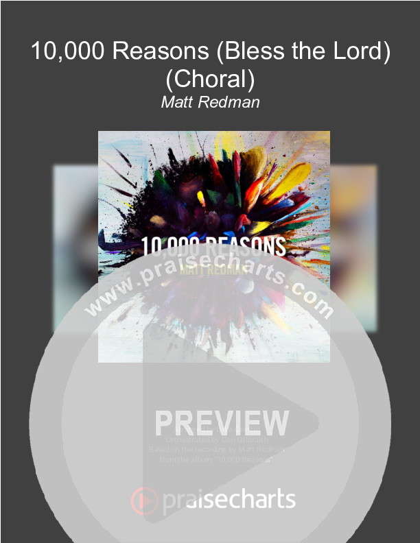 Download the Orchestration for 10,000 Reasons (Bless The Lord) (Choral Anthem SATB) by Matt Redman / Passion / Arr. Luke Gambill, from the album 10000 Reasons. This song was arranged by Luke Gambill / Daniel Galbraith in the key of Eb.