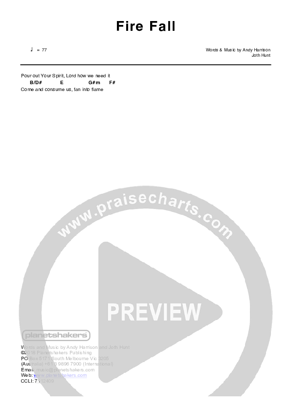 Fire Fall Chords PDF (Planetshakers)