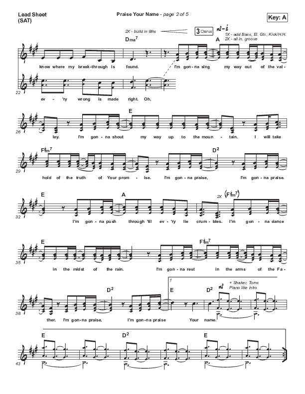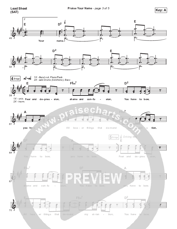 Download the Orchestration for Praise Your Name by Corey Voss / Madison Street Worship, from the album Songs Of The House. This song was arranged by Grant Wall in the key of A, Bb, G.