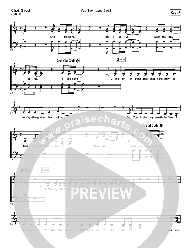 You Say (Piano) Choir Sheet Music PDF (Lauren Daigle)