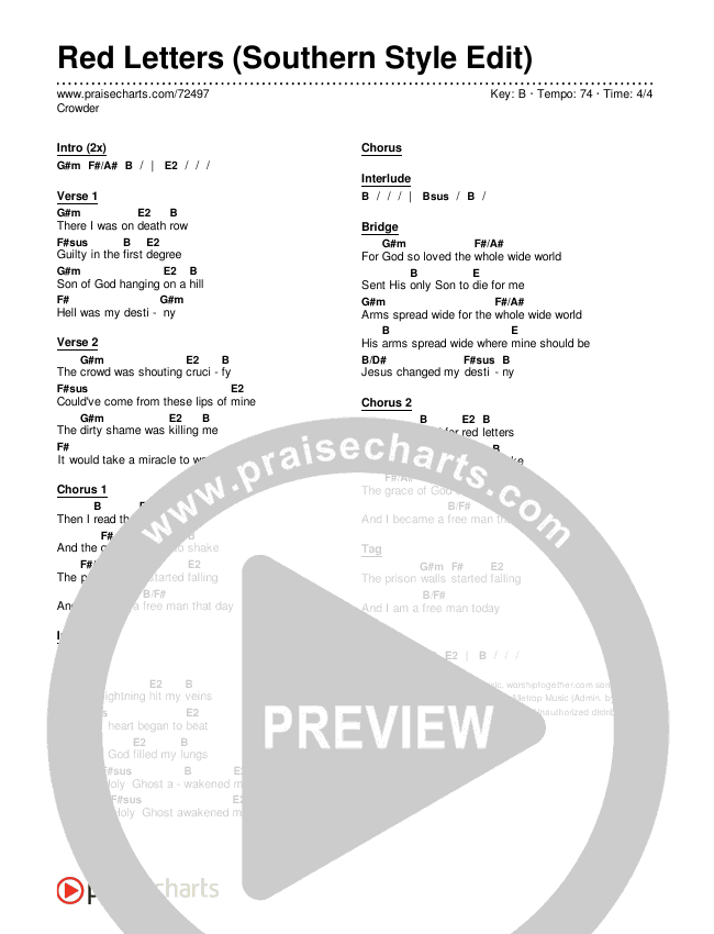 Red Letters (Southern Style Edit) Chords & Lyrics (Crowder)