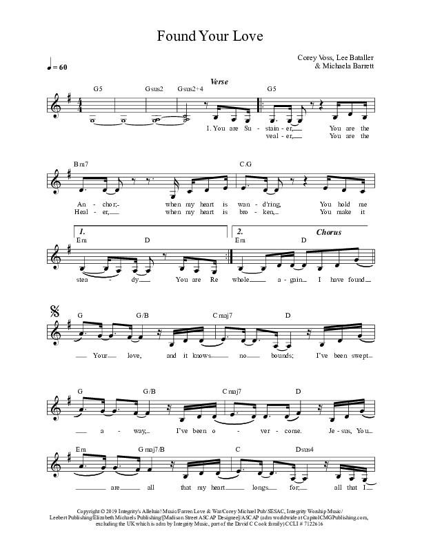 Download the Orchestration for Found Your Love by Corey Voss / Madison Street Worship / Annalise Bush, from the album Songs Of The House.