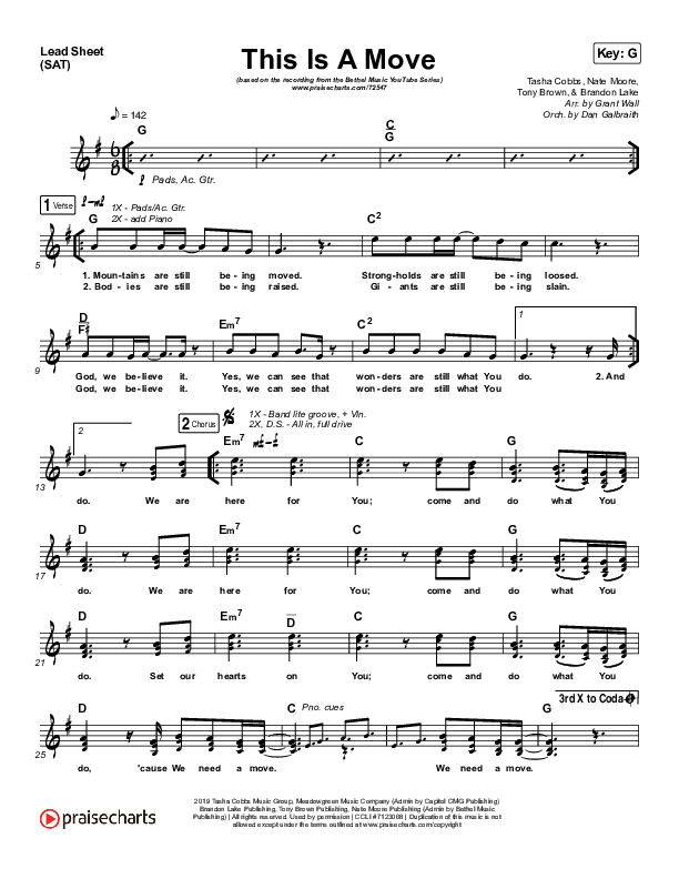 Download the sheet music for This Is A Move (YouTube) by Brandon Lake / Bethel Music, from the album Bethel Music YouTube Series. This song was arranged by Grant Wall / Daniel Galbraith in the key of F, G.