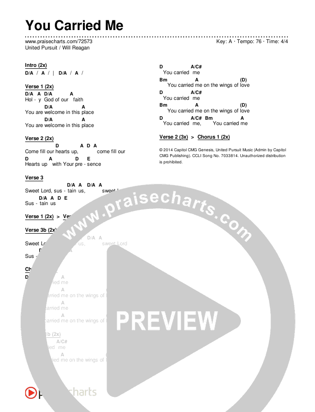 Download the PDF Chord Charts for You Carried Me by United Pursuit / Will Reagan, from the album Tell All My Friends.