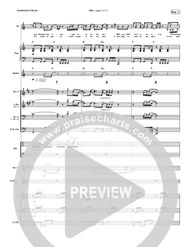 Download the Orchestration for Alive by Big Daddy Weave, from the album When The Light Comes. This song was arranged by Jeff Moore / Daniel Galbraith in the key of Bb, C.
