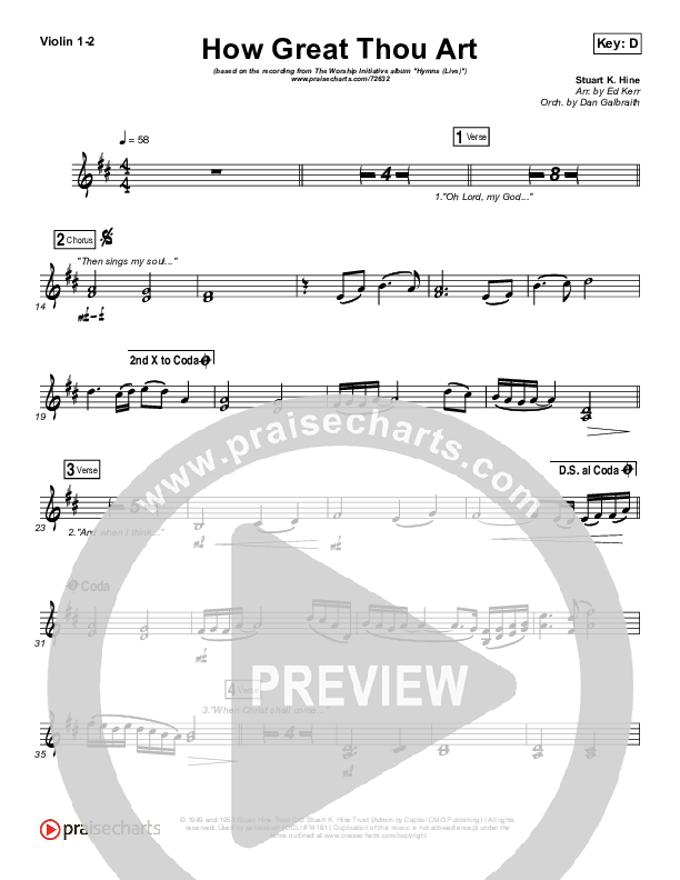 Download the Orchestration string parts for How Great Thou Art (Live) by Shane & Shane, from the album Hymns (Live). This song was arranged by Ed Kerr / Jeff Moore / Daniel Galbraith in the key of C, D.