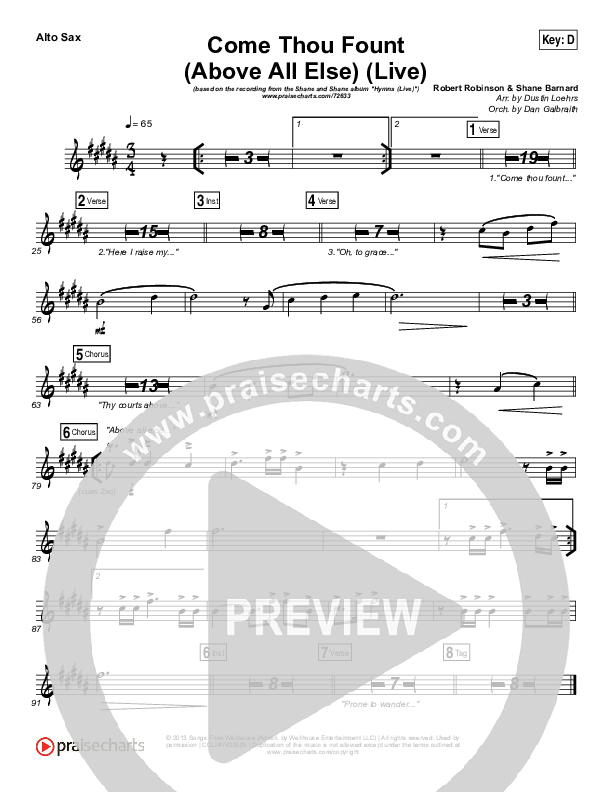 Come Thou Fount (Above All Else) (Live) Alto Sax Sheet Music PDF (Shane & Shane)