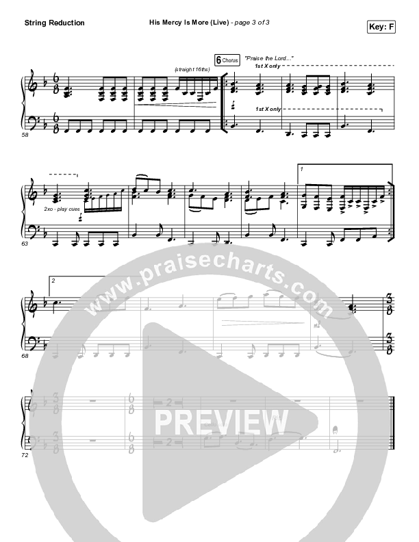 Download the Orchestration string parts for His Mercy Is More (Live) by Shane & Shane, from the album Hymns (Live). This song was arranged by Daniel Galbraith / Dustin Loehrs in the key of F, G.