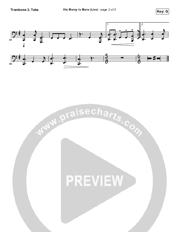 His Mercy Is More (Live) Trombone/Tuba Sheet Music PDF (Shane & Shane)