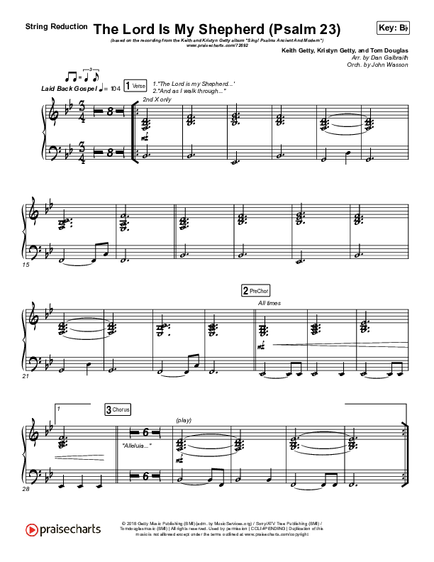 Download the Orchestration for The Lord Is My Shepherd (Psalm 23) by Keith & Kristyn Getty, from the album Sing! Psalms Ancient and Modern. This song was arranged by Daniel Galbraith in the key of Bb, C.