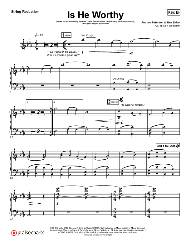Download the Orchestration for Is He Worthy (Live) by Chris Tomlin, from the album Holy Roar: Live From Church. This song was arranged by Daniel Galbraith in the key of C, D, E, Eb.