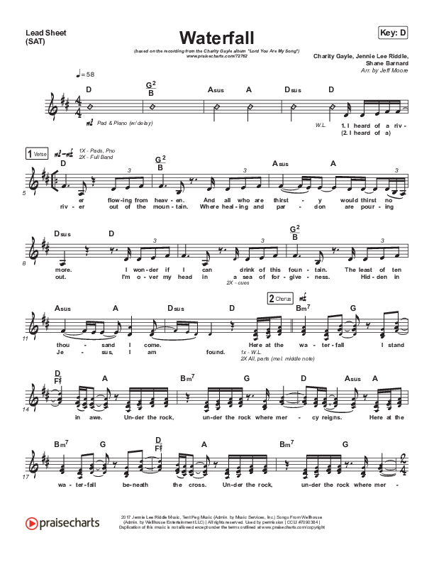 Download the sheet music for Waterfall by Charity Gayle, from the album Lord You Are My Song (Deluxe). This song was arranged by Jeff Moore in the key of D, Eb.