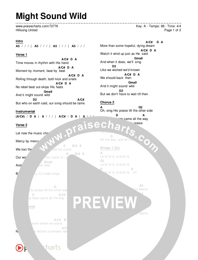 Download the PDF Chord Charts for Might Sound Wild by Hillsong UNITED, from the album People. This song was arranged by Lee Marcum in the key of A, Bb.