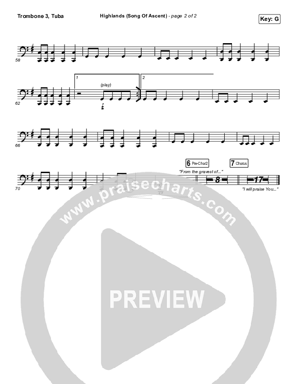 Highlands (Song Of Ascent) Trombone/Tuba Sheet Music PDF (Hillsong UNITED)