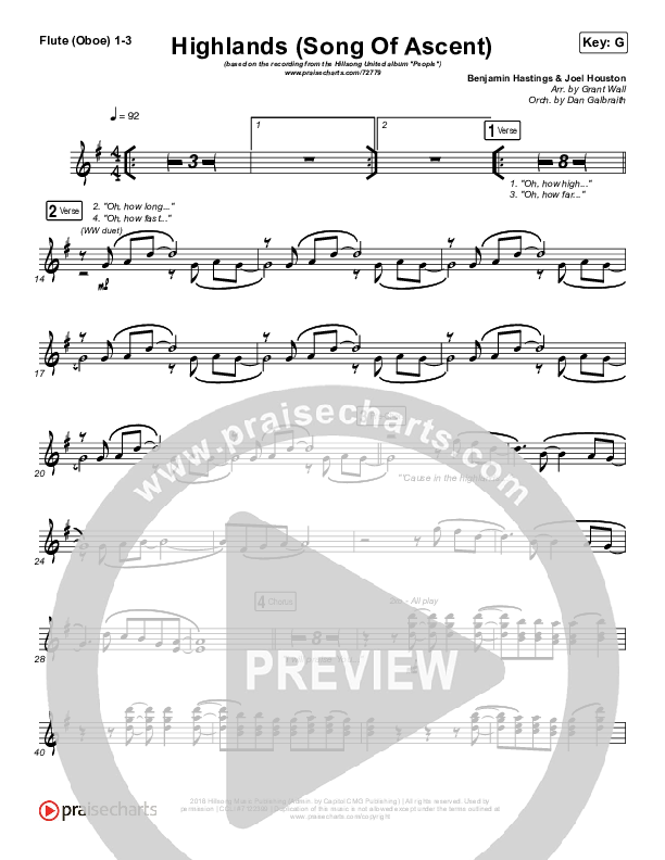 Download the Orchestration wind parts for Highlands (Song Of Ascent) by Hillsong UNITED, from the album People. This song was arranged by Grant Wall / Daniel Galbraith in the key of F, G.