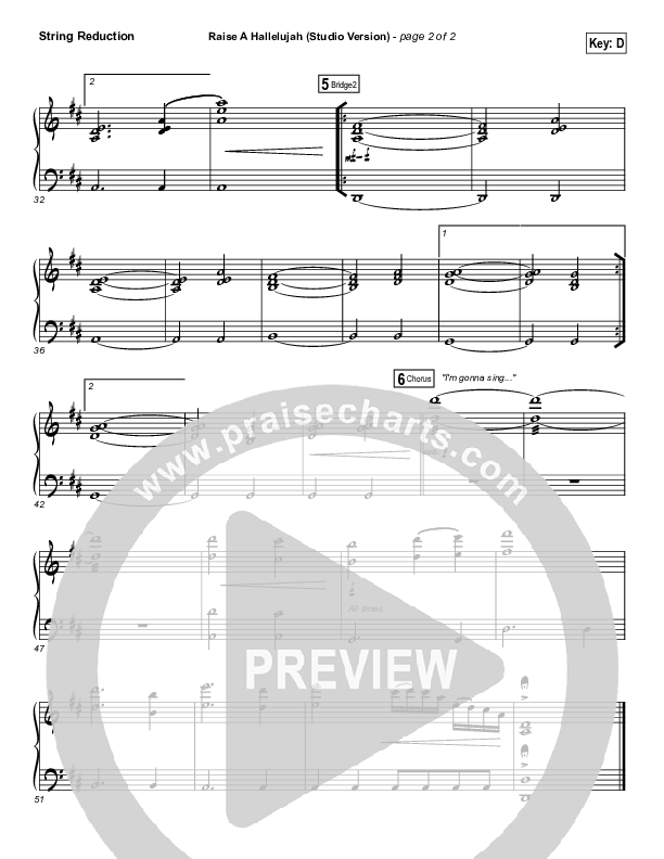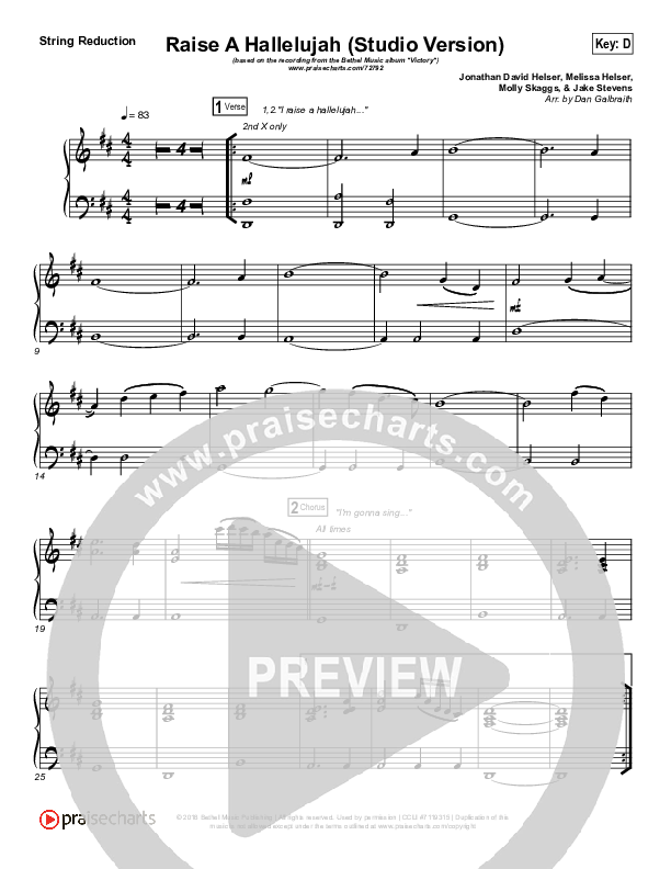 Download the String Reduction sheet music for Raise A Hallelujah (Studio) by Bethel Music, from the album Victory. This song was arranged by Daniel Galbraith in the key of C, D, Db.