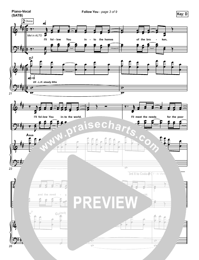 Download the sheet music for Follow You by Leeland, from the album Love Is On The Move. This song was arranged by Joel Mott / John Carlson in the key of C, D.