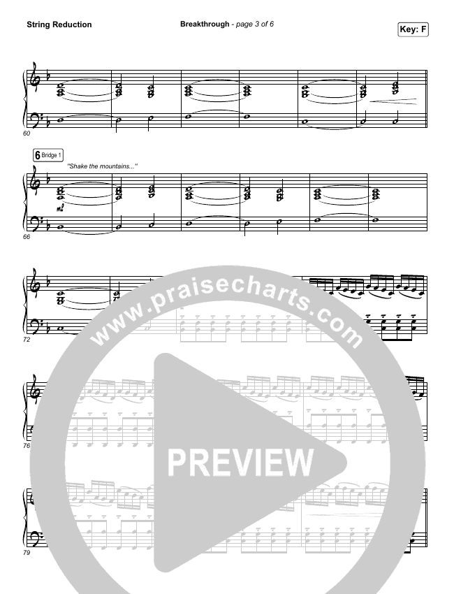 Download the Orchestration string parts for Breakthrough (Live) by Red Rocks Worship, from the album Spark. This song was arranged by Grant Wall / Daniel Galbraith in the key of Eb, F.