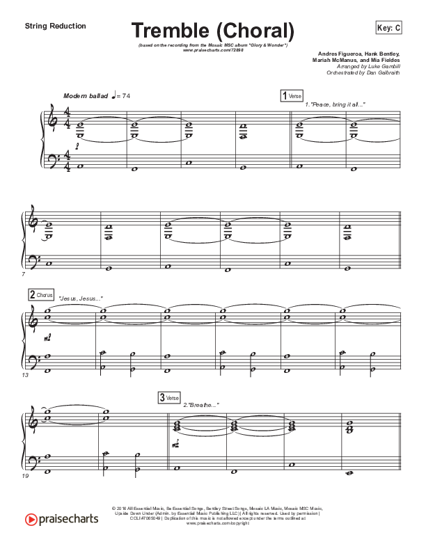 Download the Orchestration for Tremble (Choral Anthem SATB) by Mosaic MSC / Arr. Luke Gambill, from the album Glory & Wonder. This song was arranged by Luke Gambill / Daniel Galbraith in the key of C.