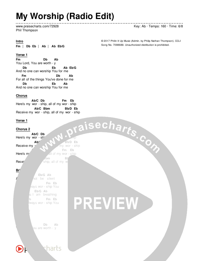Download the PDF Chord Charts for My Worship (Radio) by Phil Thompson, from the album My Worship.