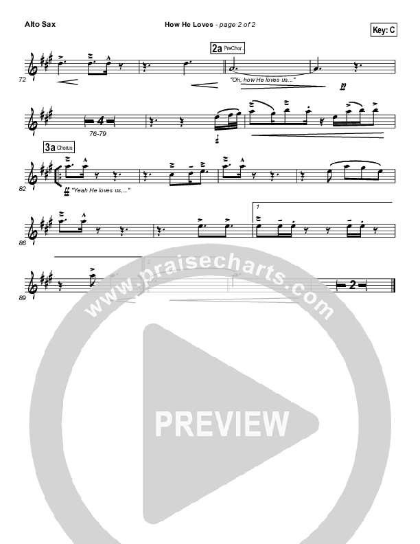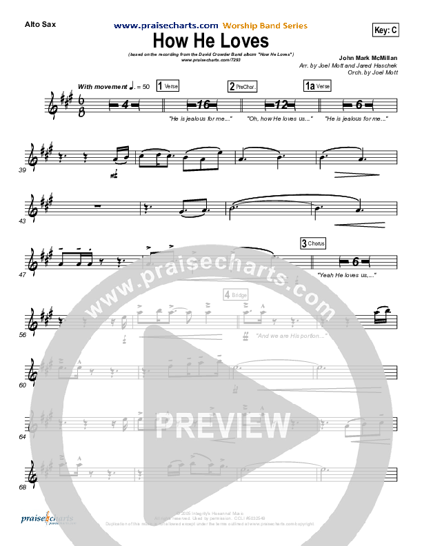 Download the AltoSax sheet music for How He Loves (Radio) by David Crowder, from the album How He Loves. This song was arranged by Joel Mott / Jared Haschek in the key of Bb, C.