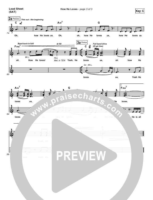Download the Orchestration for How He Loves (Radio) by David Crowder, from the album How He Loves. This song was arranged by Joel Mott / Jared Haschek in the key of Bb, C.