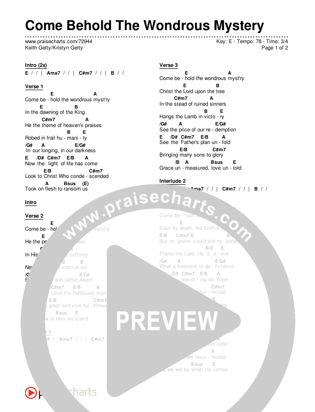 Come Behold The Wondrous Mystery Chords PDF (Keith & Kristyn Getty)
