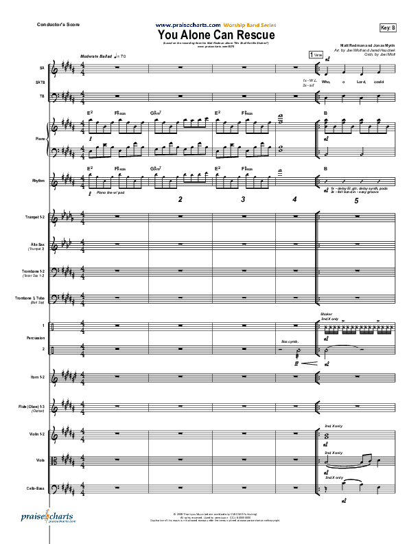 Download the Orchestration for You Alone Can Rescue by Matt Redman, from the album We Shall Not Be Shaken. This song was arranged by Joel Mott / Jared Haschek in the key of B, Bb.