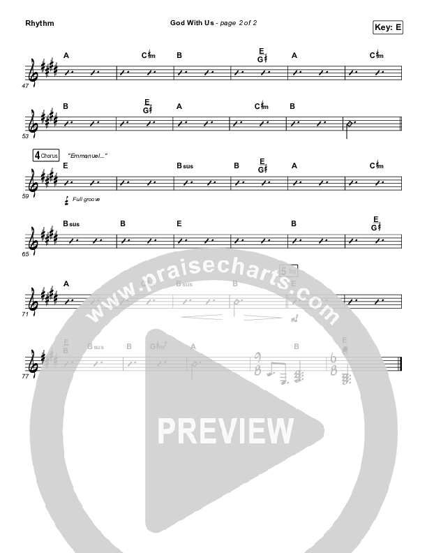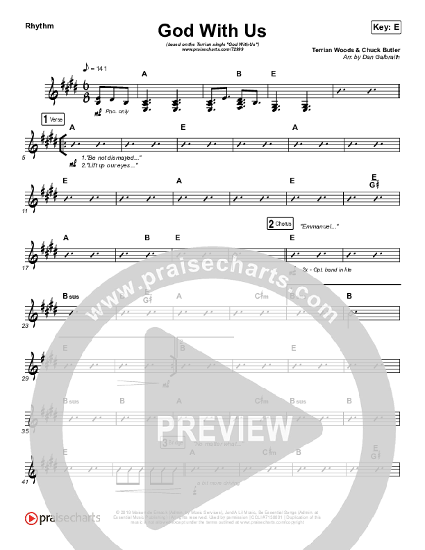 Download the Rhythm Chart for God With Us by Terrian, from the album God With Us - Single. This song was arranged by Daniel Galbraith in the key of E, Eb.
