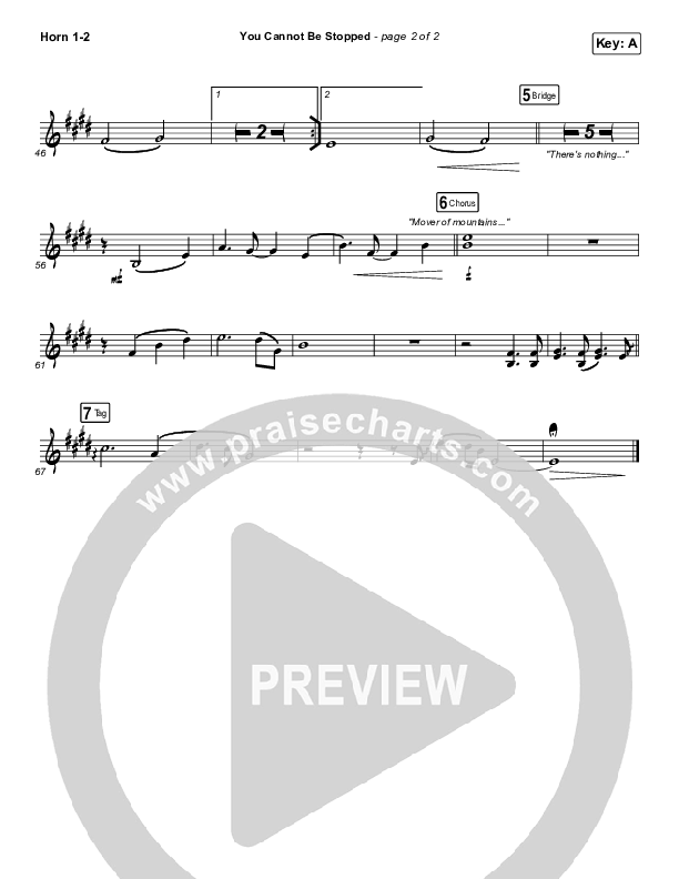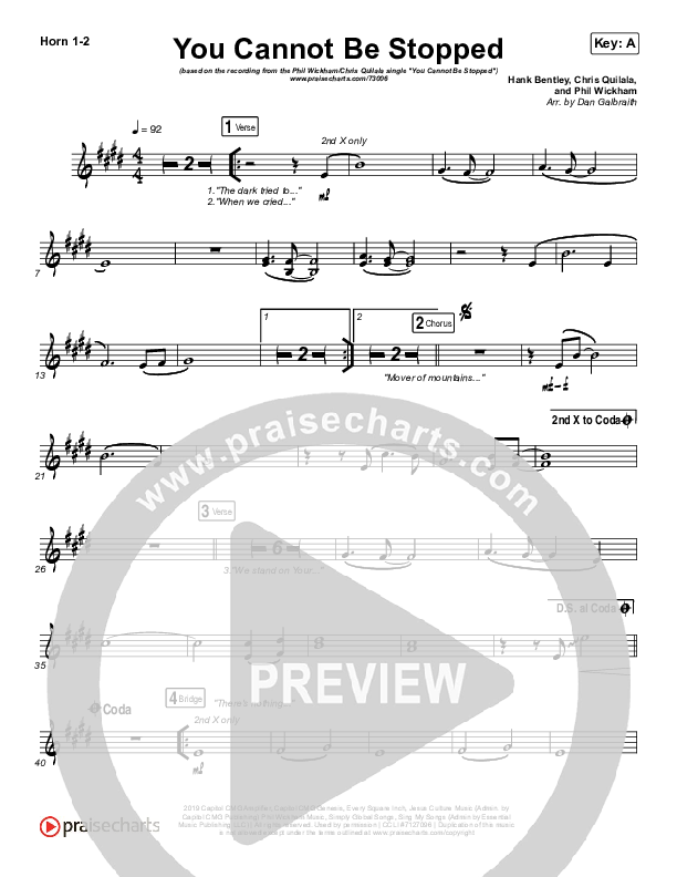 Download the Orchestration brass parts for You Cannot Be Stopped by Phil Wickham / Chris Quilala, from the album You Cannot Be Stopped - Single. This song was arranged by Daniel Galbraith in the key of A, G.