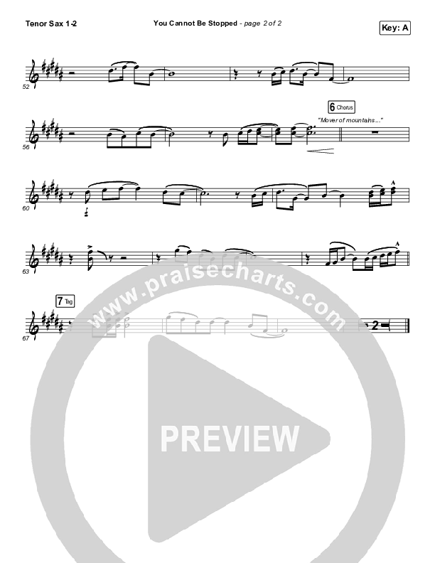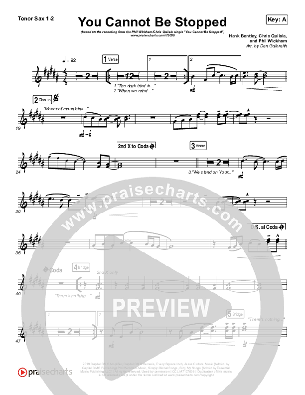 Download the Tenor Sax sheet music for You Cannot Be Stopped by Phil Wickham / Chris Quilala, from the album You Cannot Be Stopped - Single. This song was arranged by Daniel Galbraith in the key of A, G.