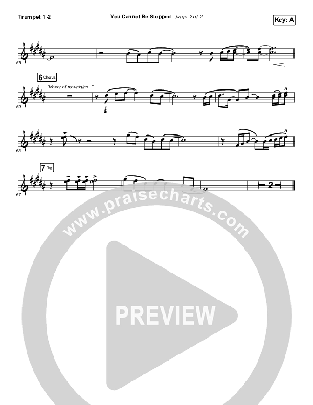 Download the trumpet sheet music for You Cannot Be Stopped by Phil Wickham / Chris Quilala, from the album You Cannot Be Stopped - Single. This song was arranged by Daniel Galbraith in the key of A, G.