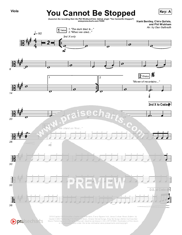 Download the Viola sheet music for You Cannot Be Stopped by Phil Wickham / Chris Quilala, from the album You Cannot Be Stopped - Single. This song was arranged by Daniel Galbraith in the key of A, G.