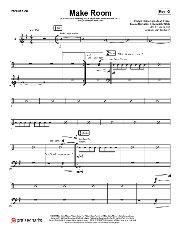 Download the percussion sheet music for Make Room (Live) by Community Music, from the album Make Room - EP. This song was arranged by Grant Wall / Daniel Galbraith in the key of Ab, G.