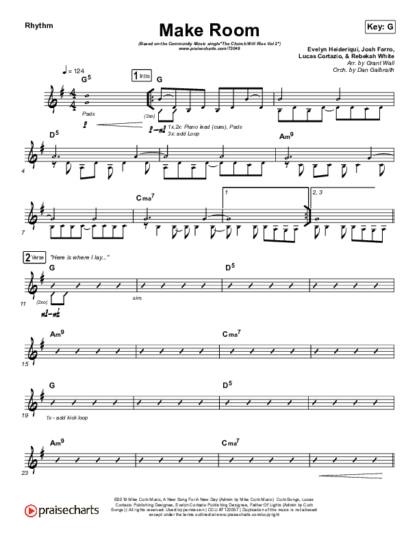 Download the Rhythm Chart for Make Room (Live) by Community Music, from the album Make Room - EP. This song was arranged by Grant Wall / Daniel Galbraith in the key of Ab, G.