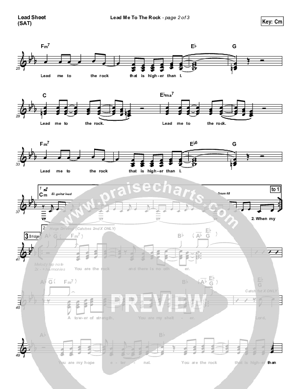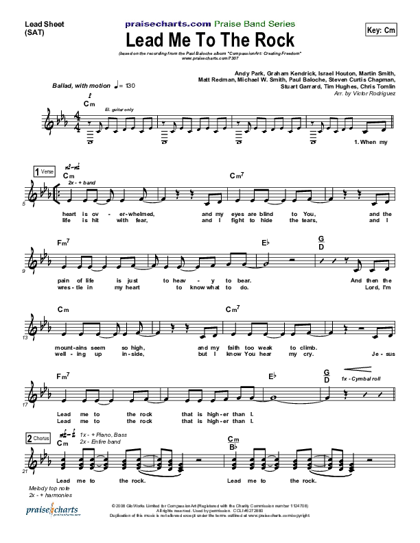 Download the sheet music for Lead Me To The Rock, from the album CompassionArt. This song was arranged by Victor Rodriguez in the key of Cm, Dm.