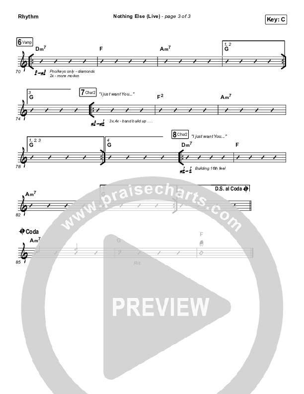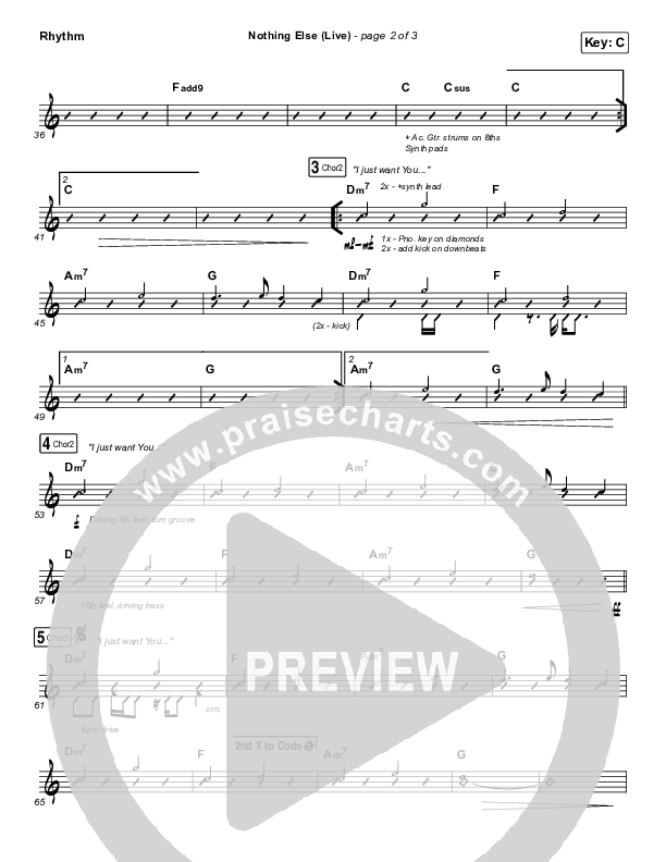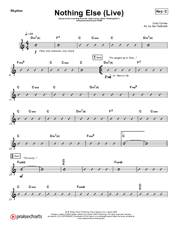 Download the Rhythm Chart for Nothing Else (Live) by Cody Carnes, from the album Nothing Else - Single. This song was arranged by Daniel Galbraith in the key of Bb, C.