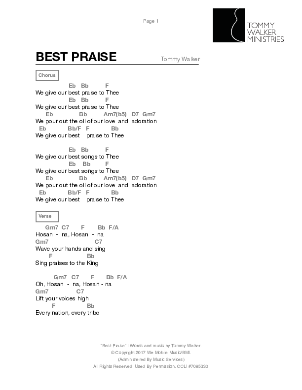 Download the PDF Chord Charts for Best Praise by Tommy Walker, from the album Book Of John.