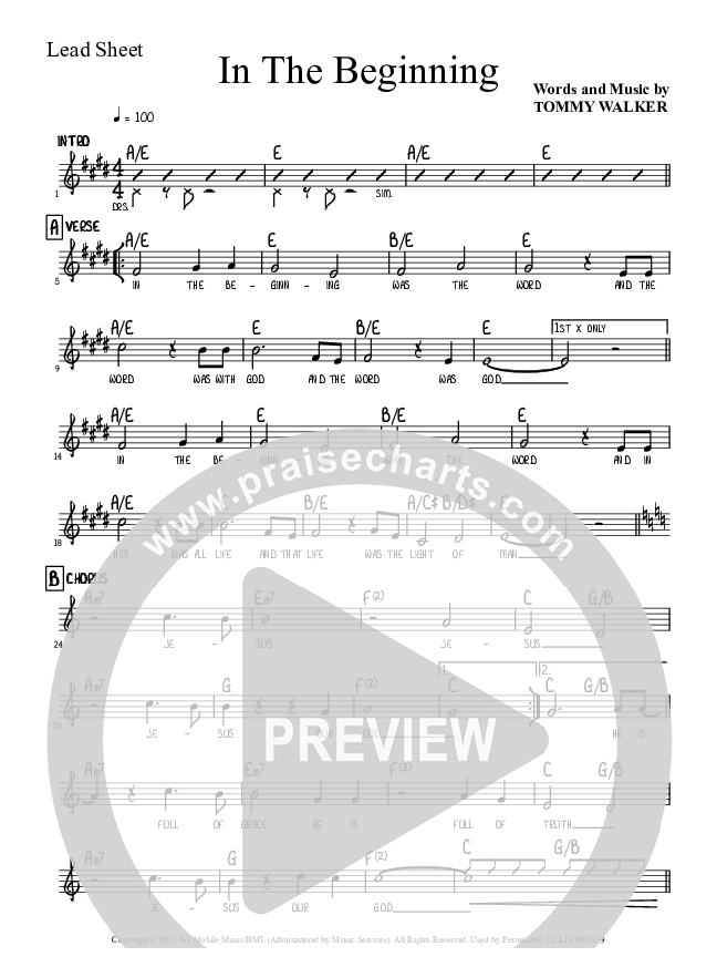 Download the sheet music for In The Beginning by Tommy Walker, from the album Book Of John.