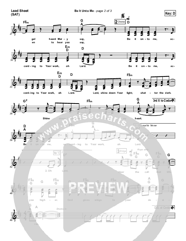 Download the sheet music for Be It Unto Me by Phillips Craig & Dean, from the album Repeat The Sounding Joy. This song was arranged by Erik Foster in the key of D, E.