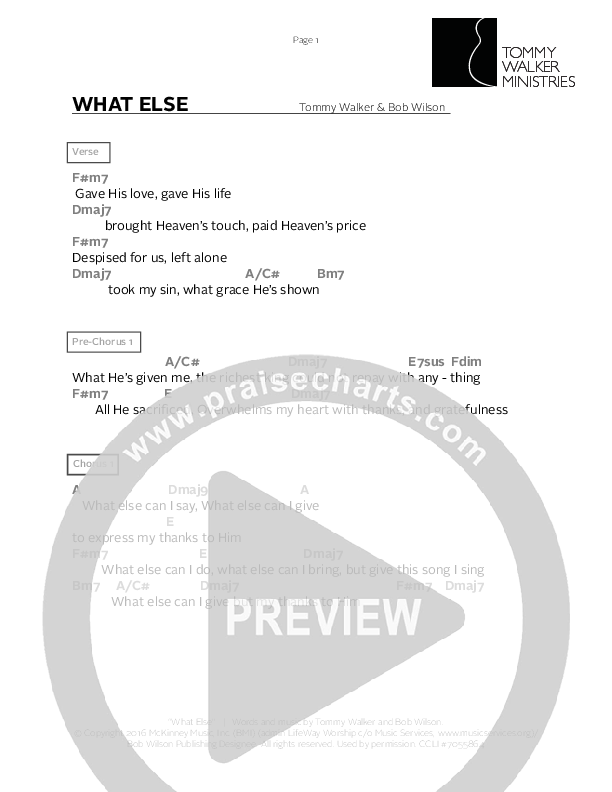 Download the PDF Chord Charts for What Else by Tommy Walker, from the album The Best Of Song Of The Week.
