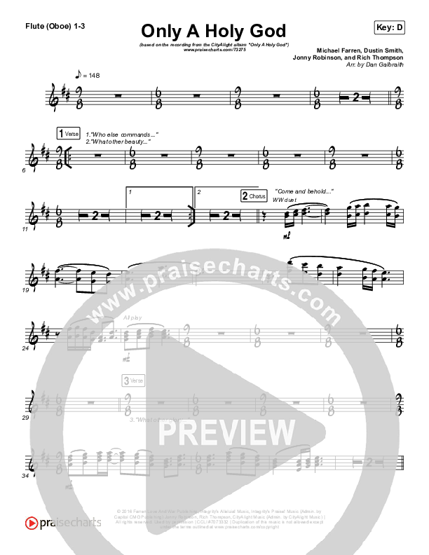 Download the Flute/Oboe sheet music for Only A Holy God by CityAlight, from the album Only A Holy God. This song was arranged by Daniel Galbraith in the key of D, Eb.
