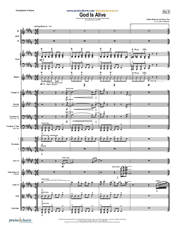 Download the Orchestration for God Is Alive by FEE Band, from the album Hope Rising. This song was arranged by Daniel Galbraith in the key of B, Bb.