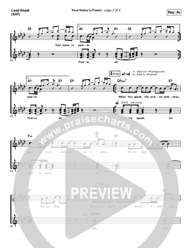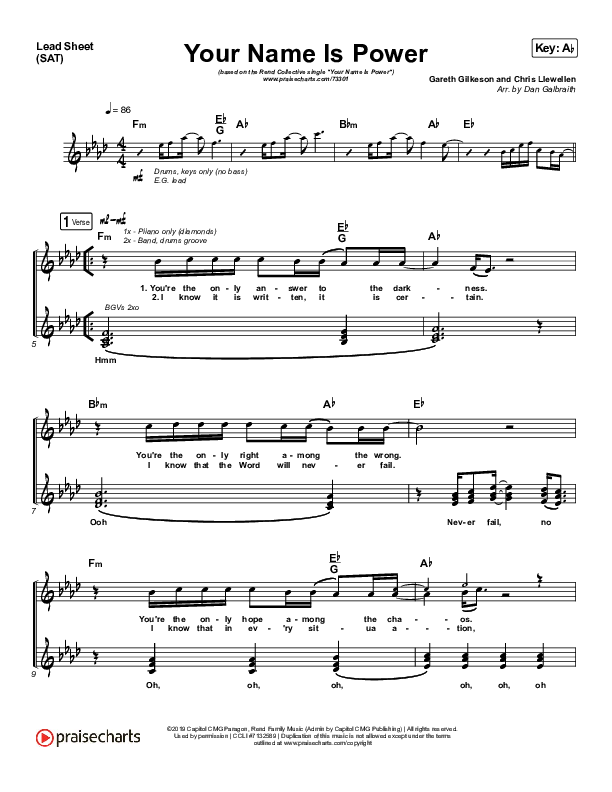 Download the sheet music for Your Name Is Power by Rend Collective, from the album Your Name Is Power - Single. This song was arranged by Daniel Galbraith in the key of Ab, G.