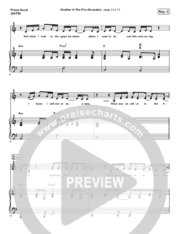 Download the sheet music for Another In The Fire (Acoustic) by Hillsong UNITED, from the album People. This song was arranged by Daniel Galbraith in the key of Bb, C.