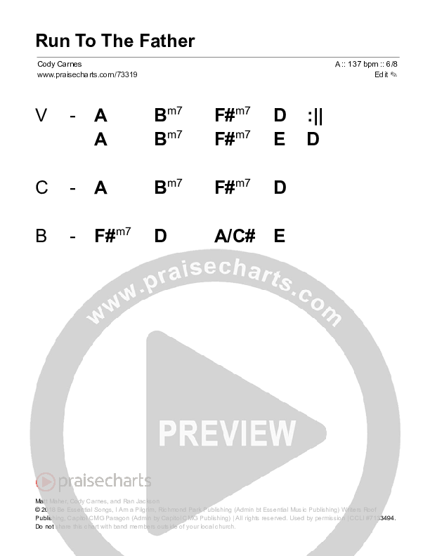 Download the free PDF Chord Charts for Run To The Father by Cody Carnes, from the album Run To The Father. This song was arranged by Daniel Galbraith in the key of A, Ab, Bb, C, G.