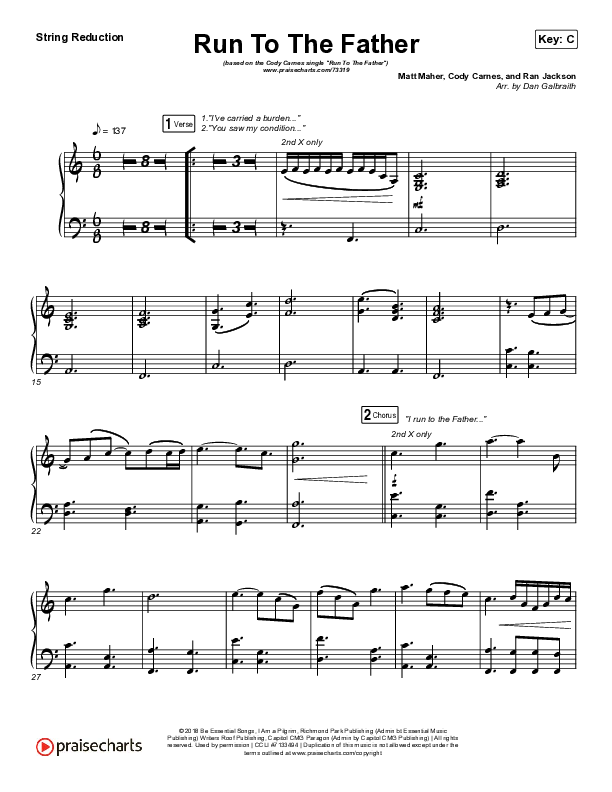 Download the Orchestration for Run To The Father by Cody Carnes, from the album Run To The Father. This song was arranged by Daniel Galbraith in the key of A, Ab, Bb, C, G.