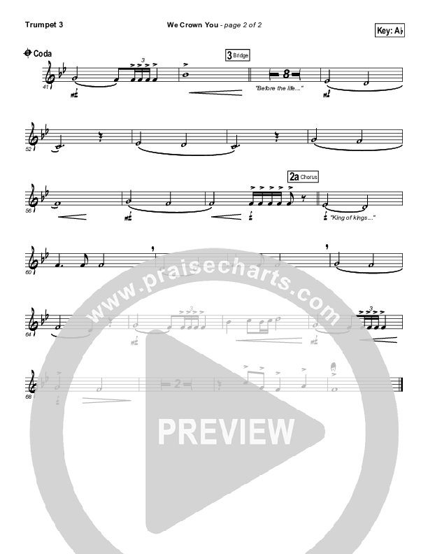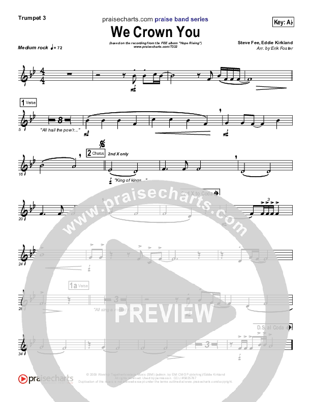 Download the Trumpet 3 sheet music for We Crown You by FEE Band, from the album Hope Rising. This song was arranged by Erik Foster in the key of Ab, G.