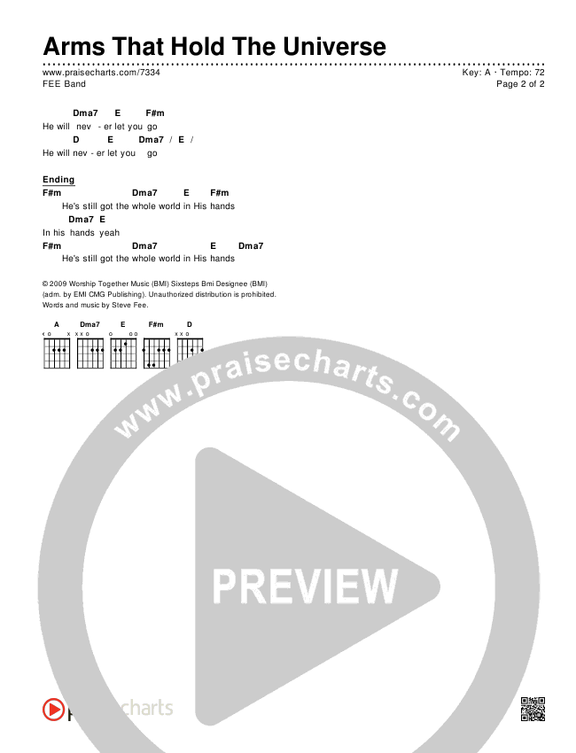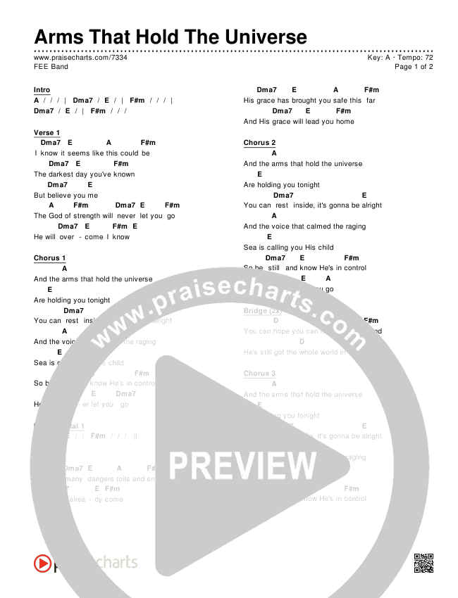 Download the PDF Chord Charts for Arms That Hold The Universe by FEE Band, from the album Hope Rising. This song was arranged by Frank Ralls / Erik Foster in the key of C, Db.