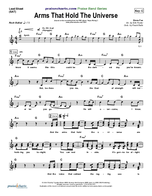 Download the Orchestration for Arms That Hold The Universe by FEE Band, from the album Hope Rising. This song was arranged by Frank Ralls / Erik Foster in the key of C, Db.